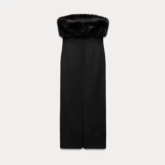 "Elena" Abendkleid mit Fellkragen